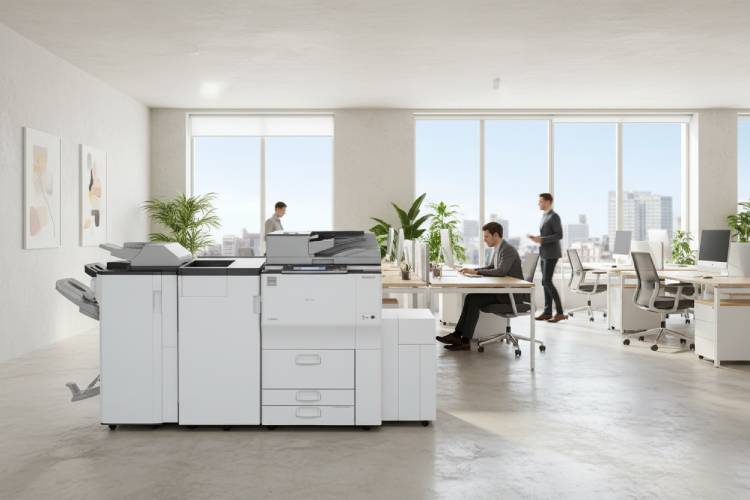 - افزایش بهرهوری: مدلهای سریع مثل Ricoh MP 9003 یا MP 8000 حجم بالایی از اسناد را در زمان کوتاه پردازش میکنند و زمان انتظار کارکنان را کاهش میدهند. مثال سادهاش چاپخانهای است که با Ricoh MP 7503 روزانه سفارش بیشتری را با کیفیت بالا تحویل میدهد و درآمدش را افزایش میدهد.
