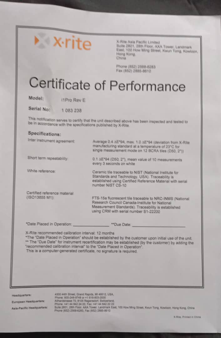 • اطمینان از اصالت دستگاه (نسخه اصلی X-Rite با شماره سریال معتبر)